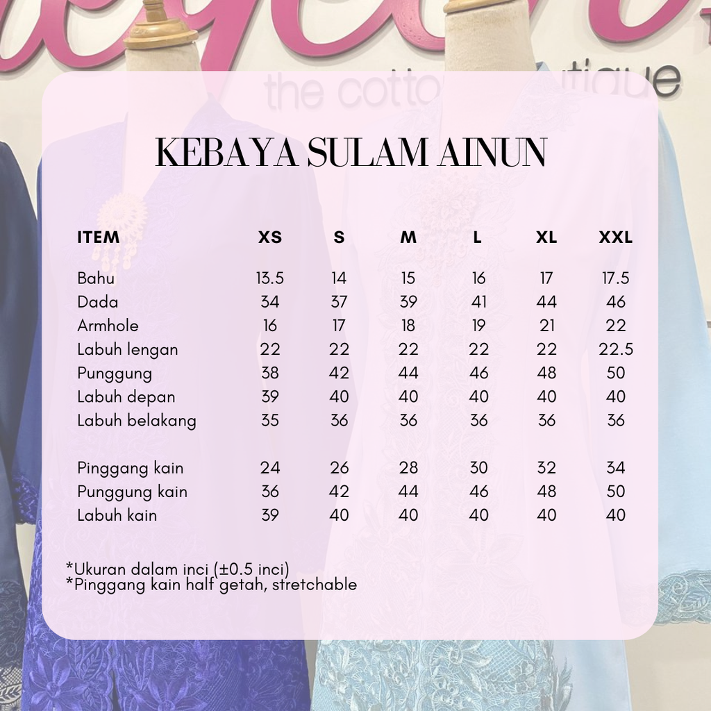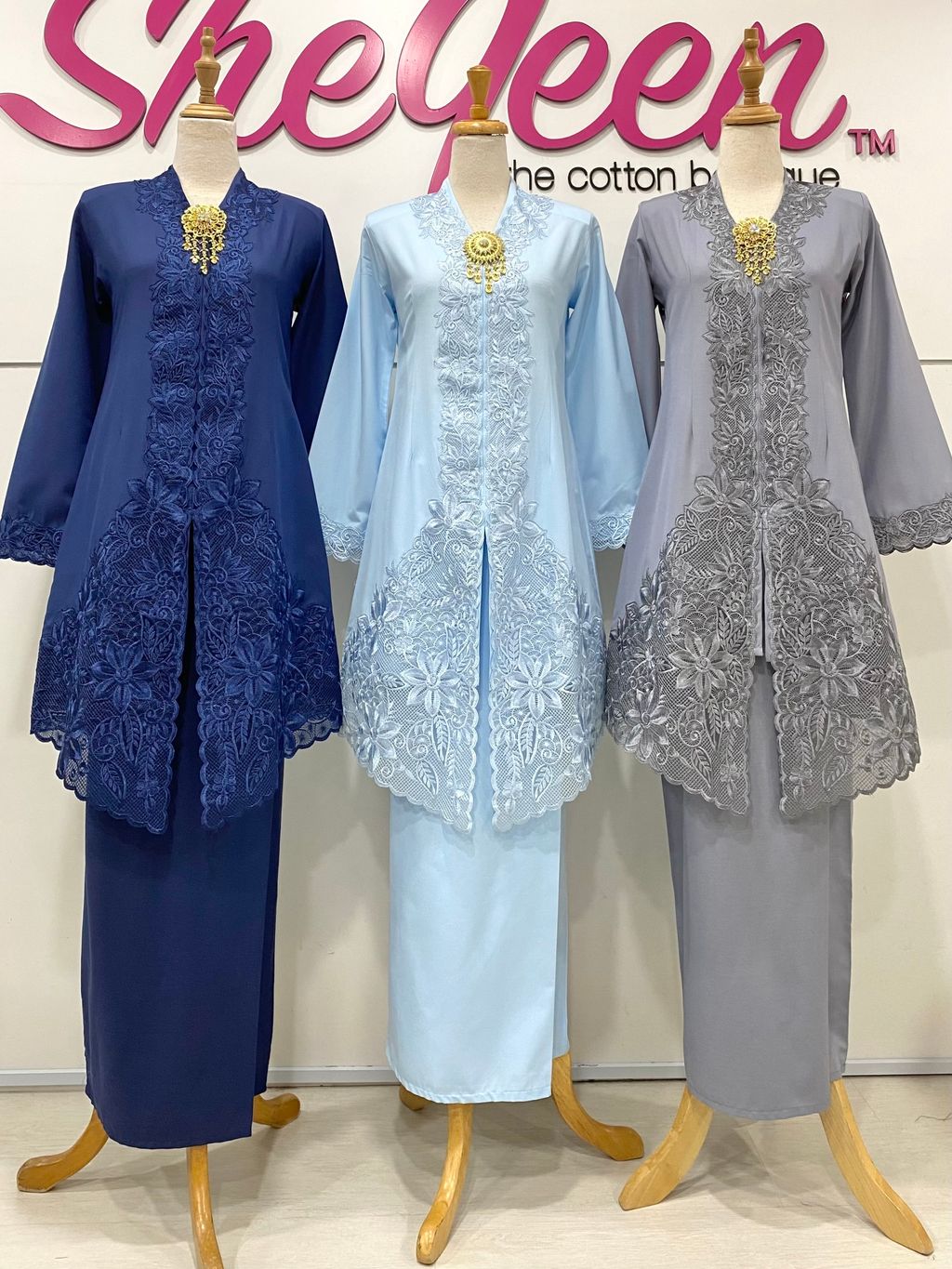 Kebaya Sulam Ainun (Navy Blue, Baby Blue, Grey)