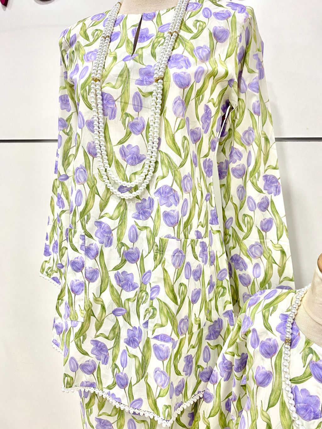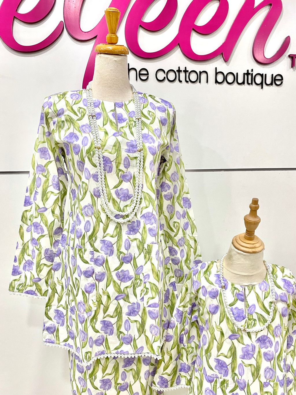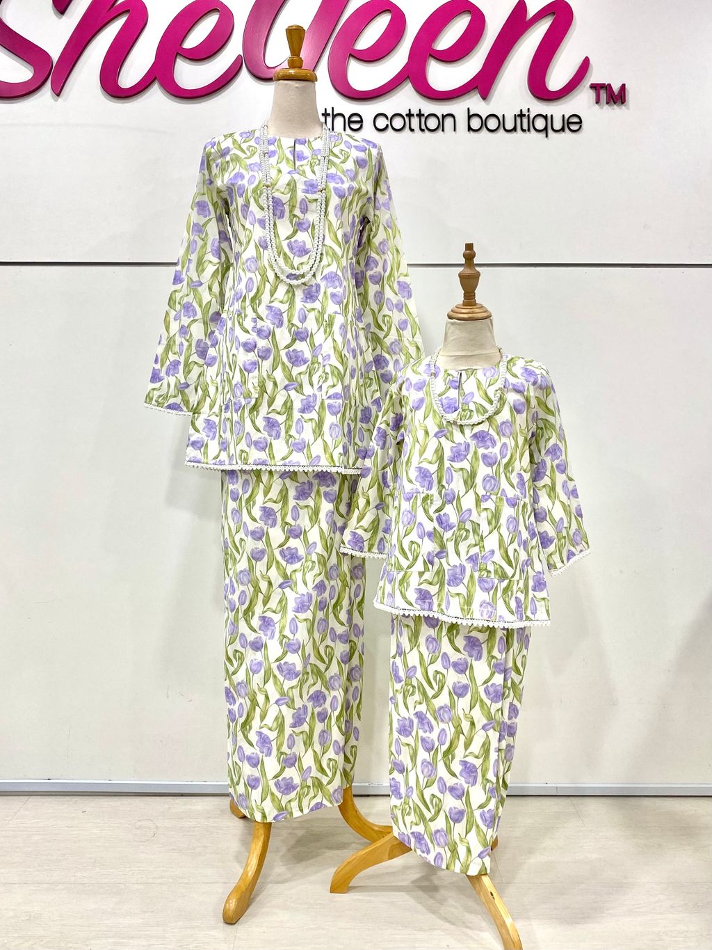 Kurung Kedah Melissa Pearl Sedondon in Lavender Tulips