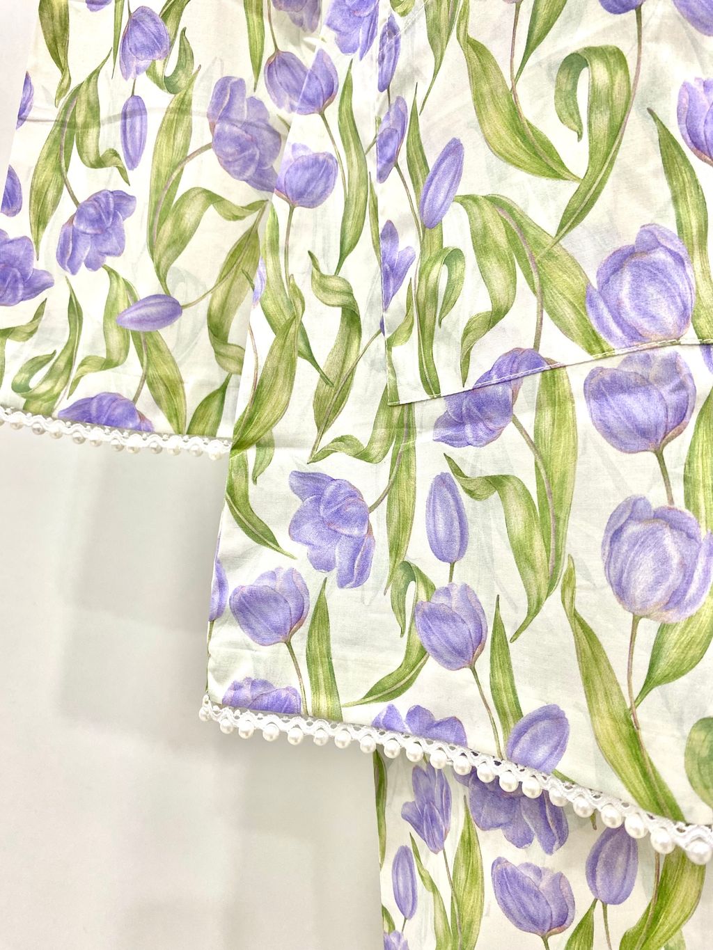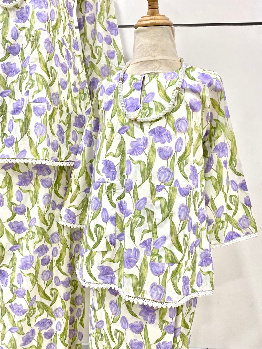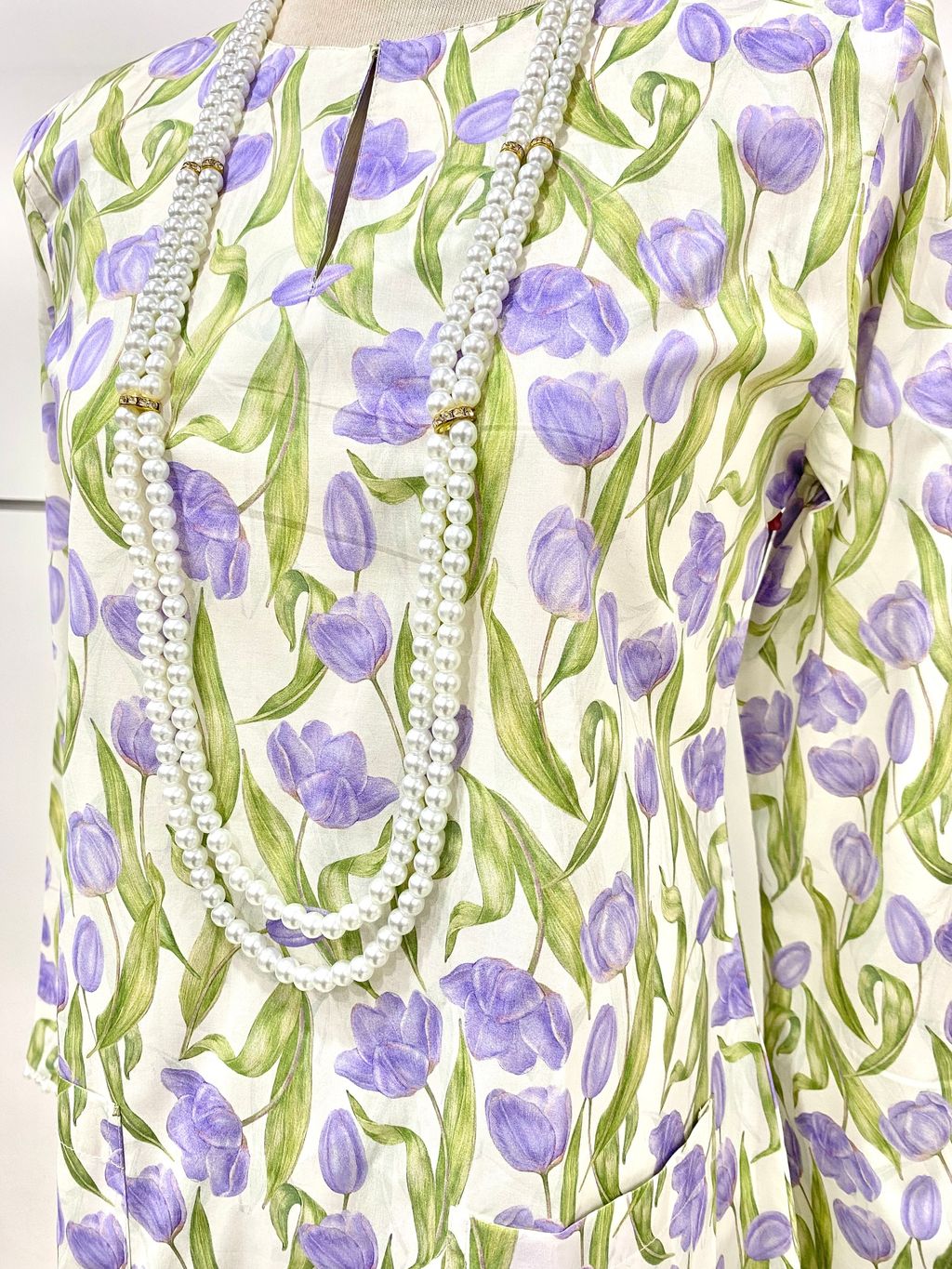 Kurung Kedah Melissa Pearl Sedondon in Lavender Tulips