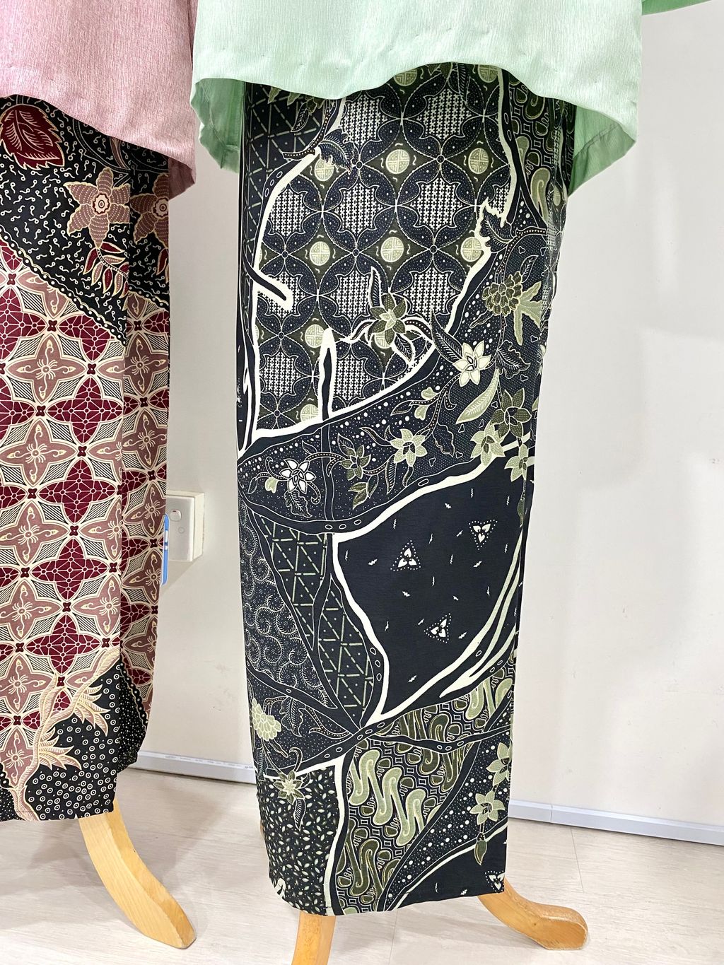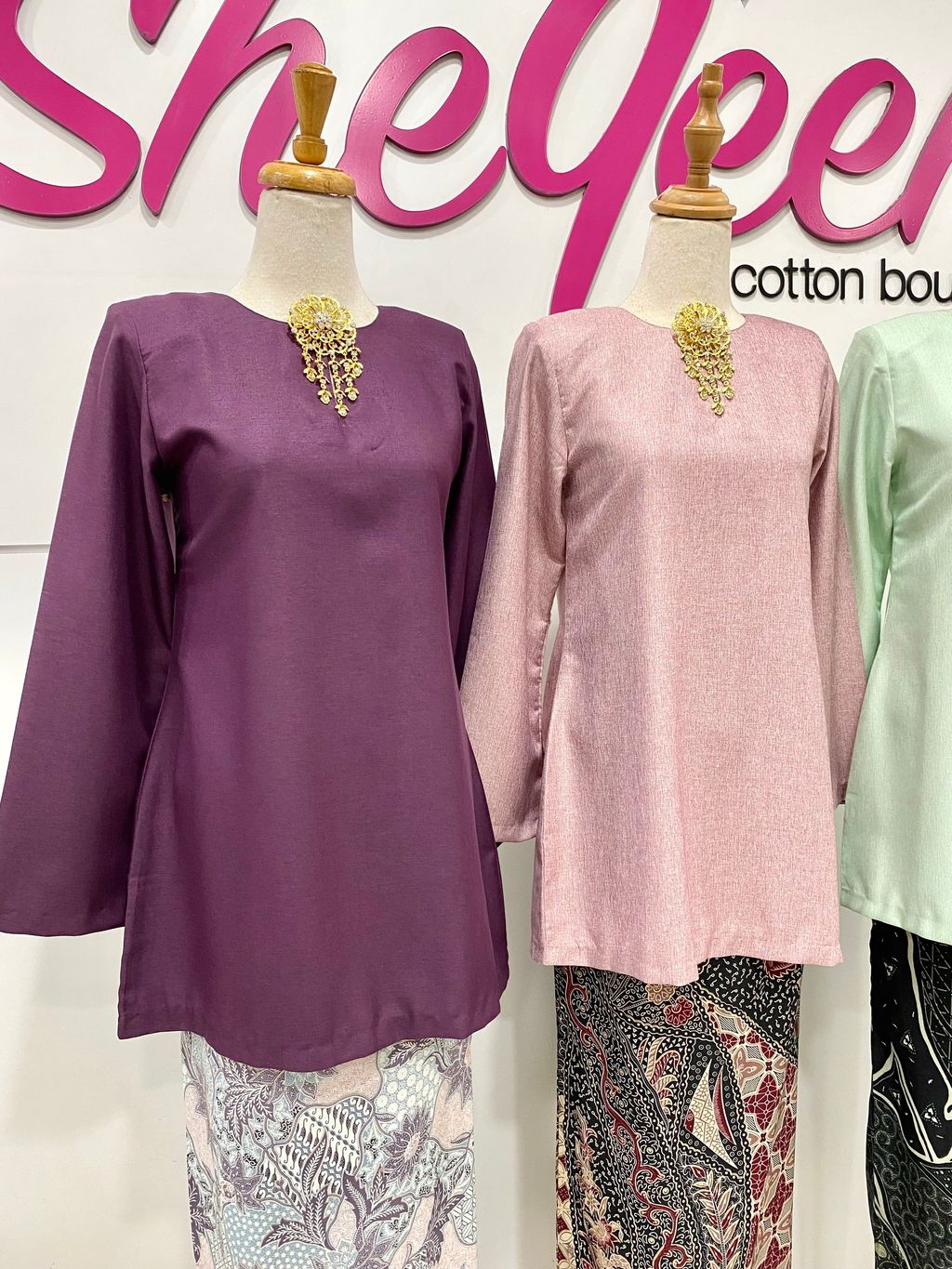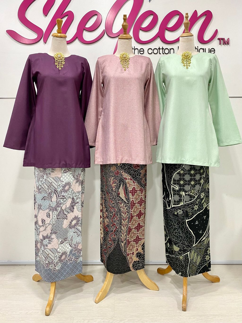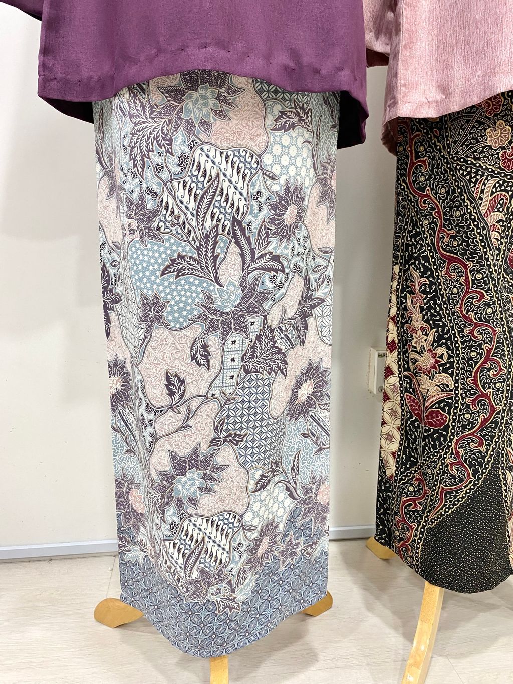 Kurung Kedah Batik in Deep Purple, Dusty Pink, Sage Mint