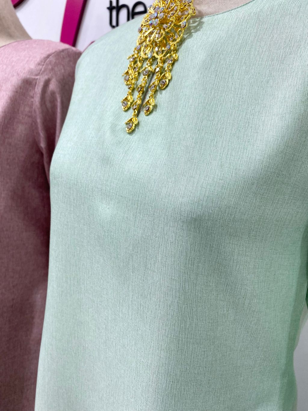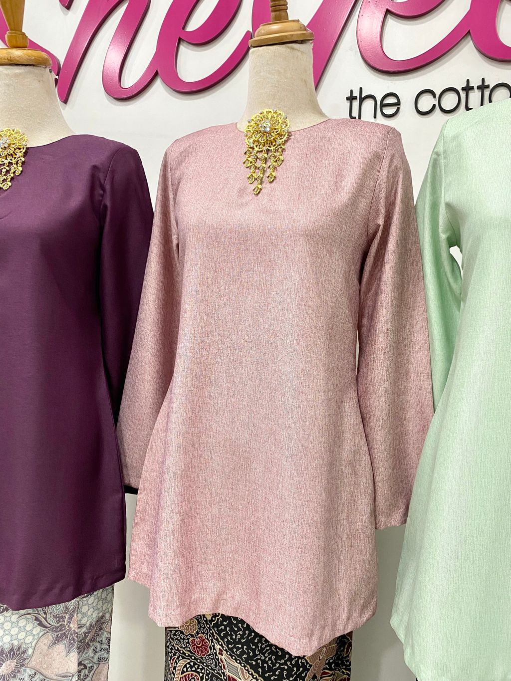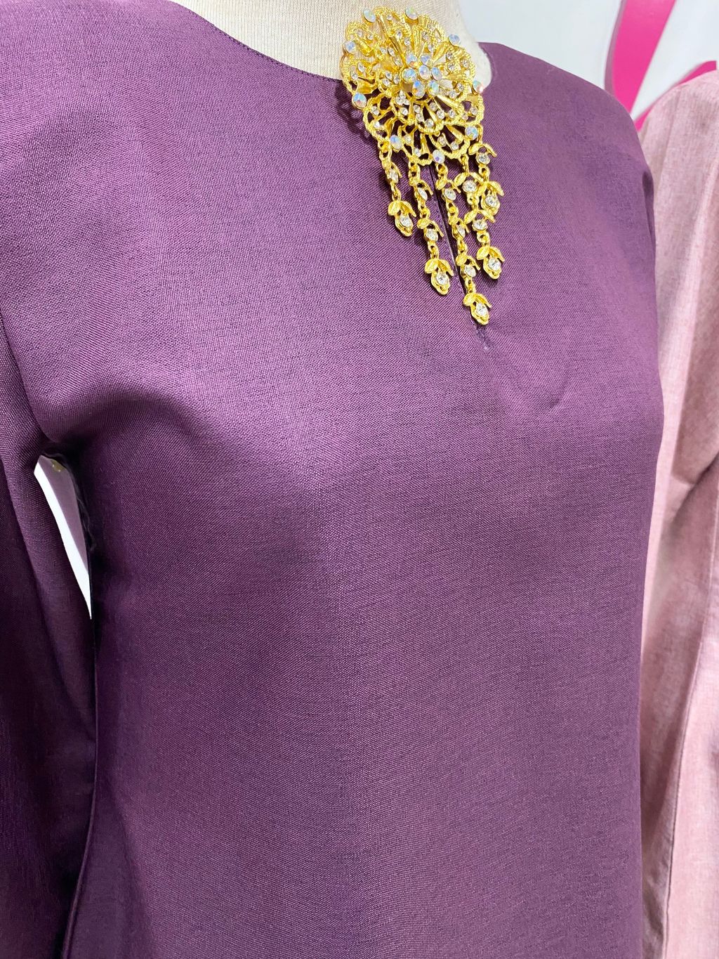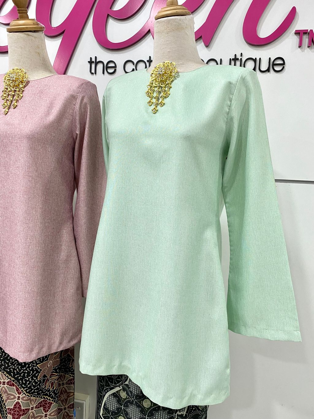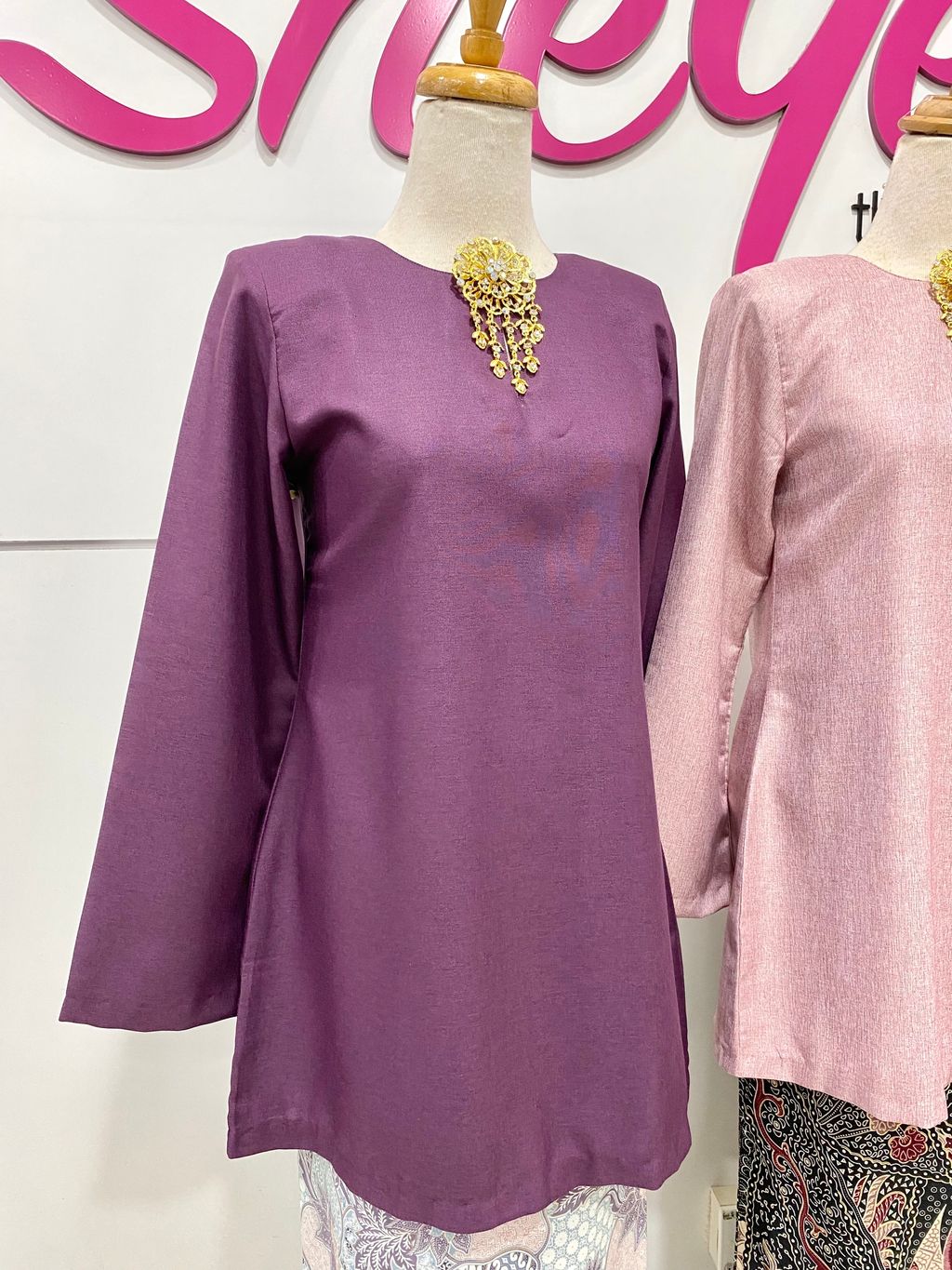 Kurung Kedah Batik in Deep Purple, Dusty Pink, Sage Mint