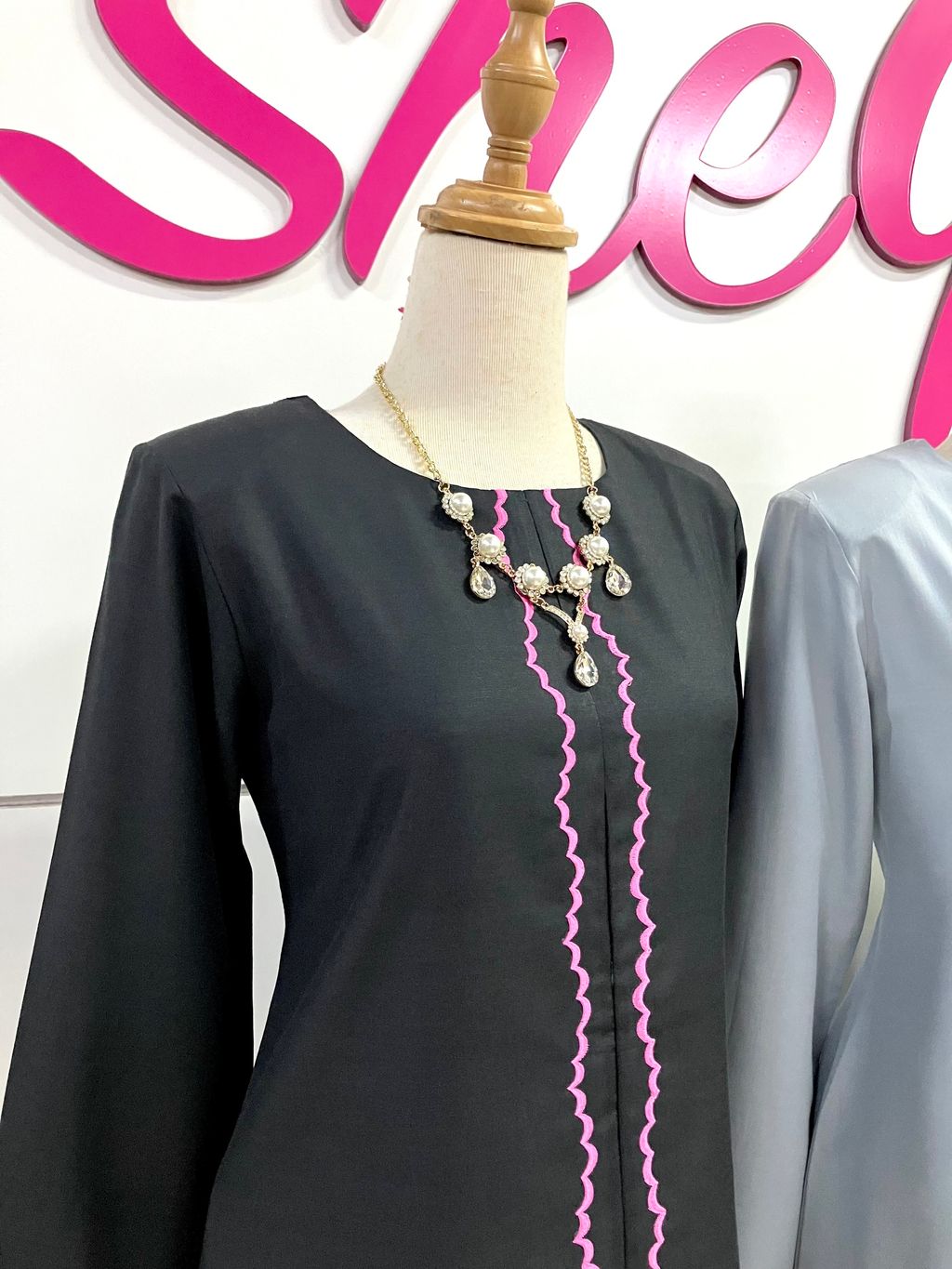 Kebaya Sulam Seroja in BlackPink, Grey & Offwhite