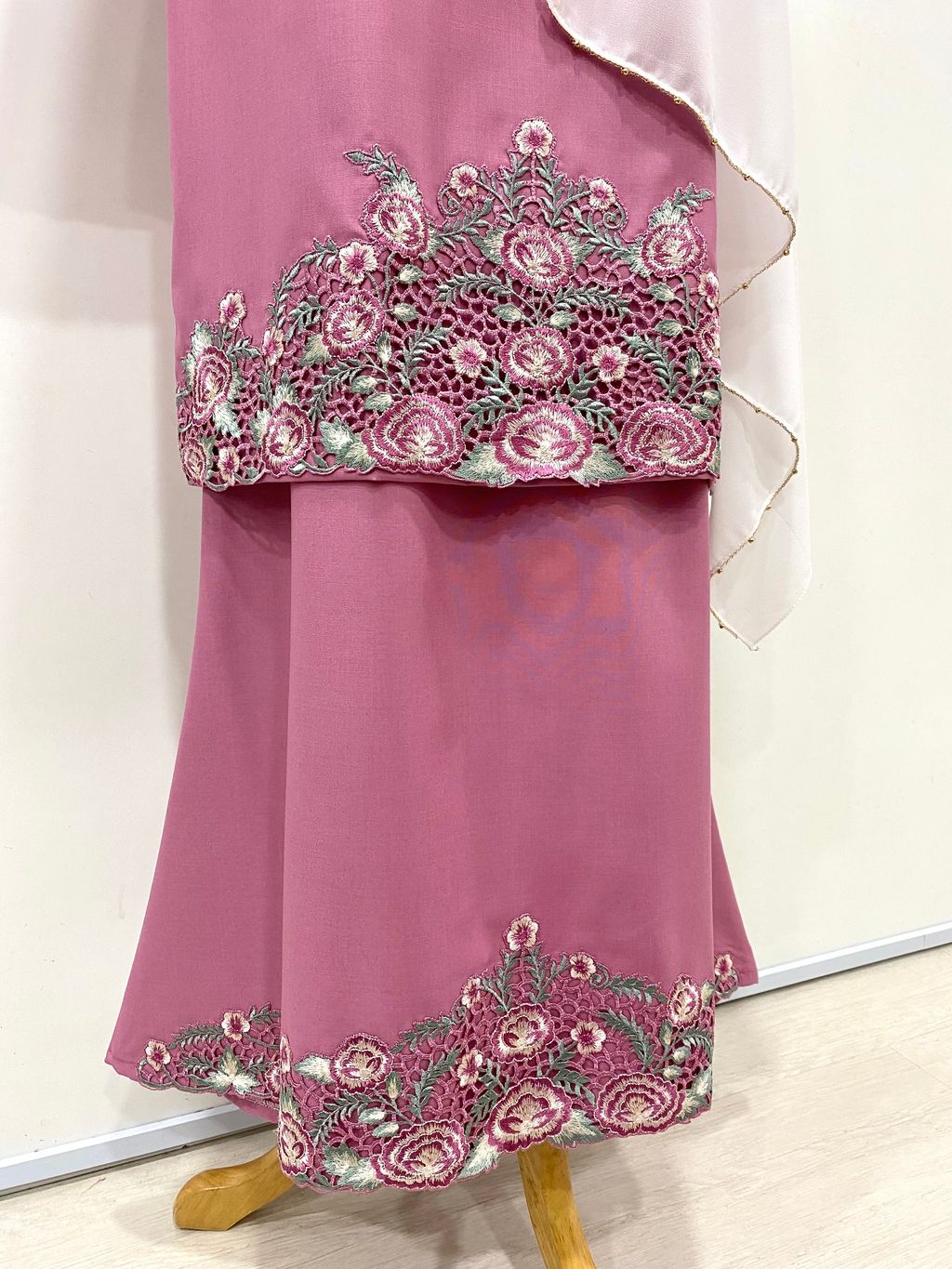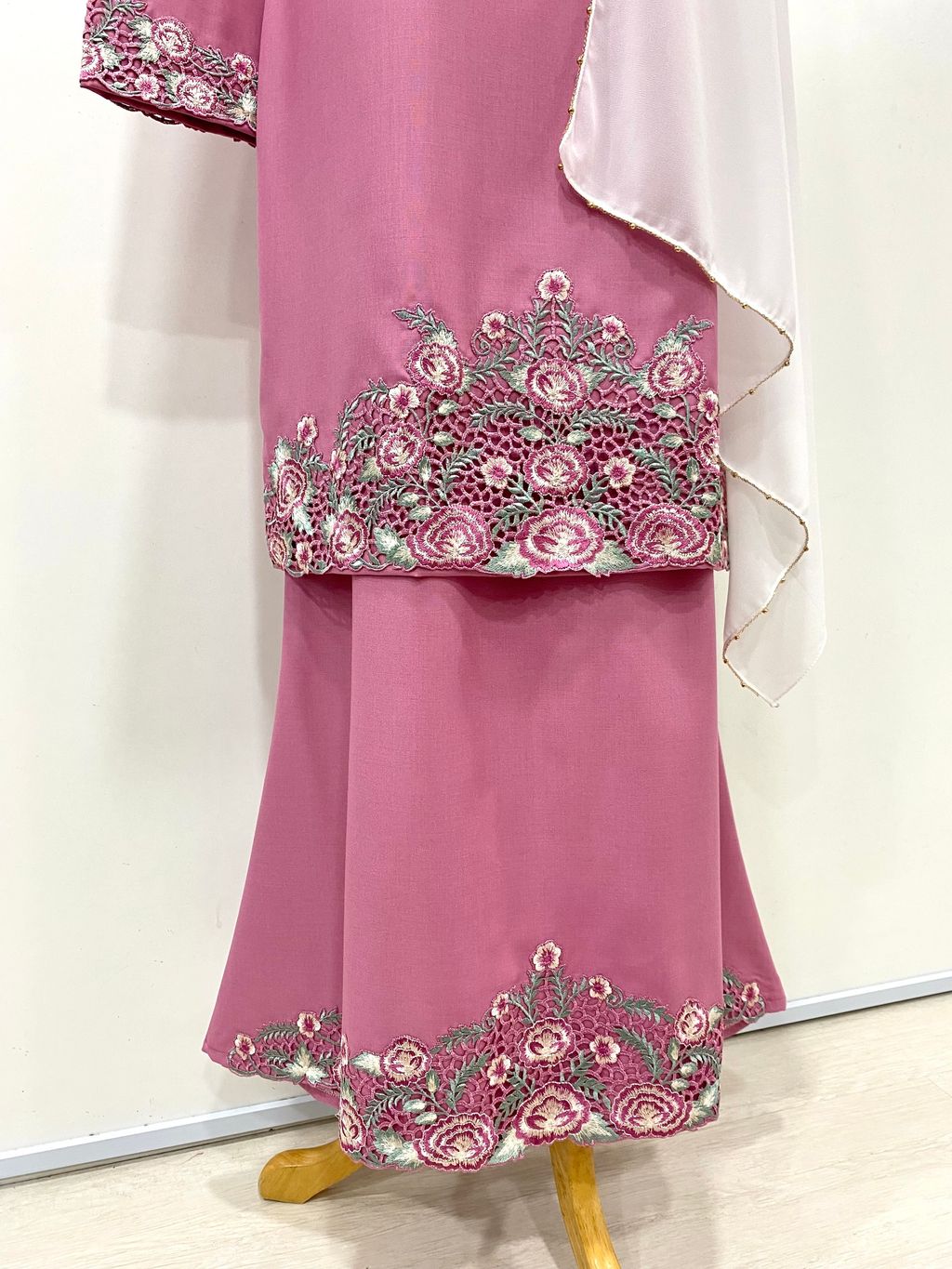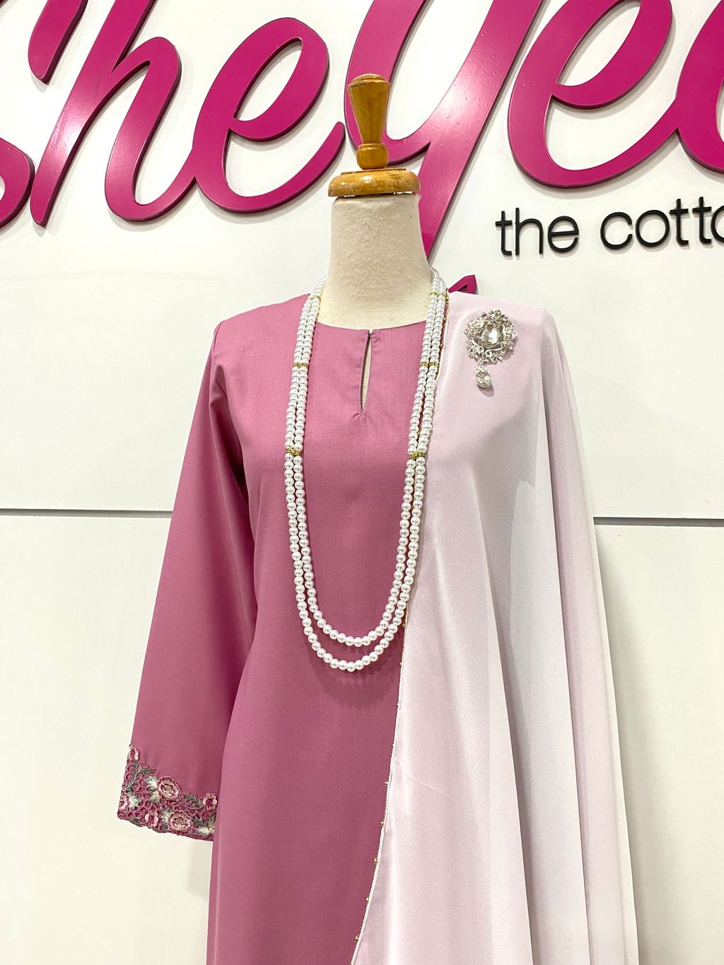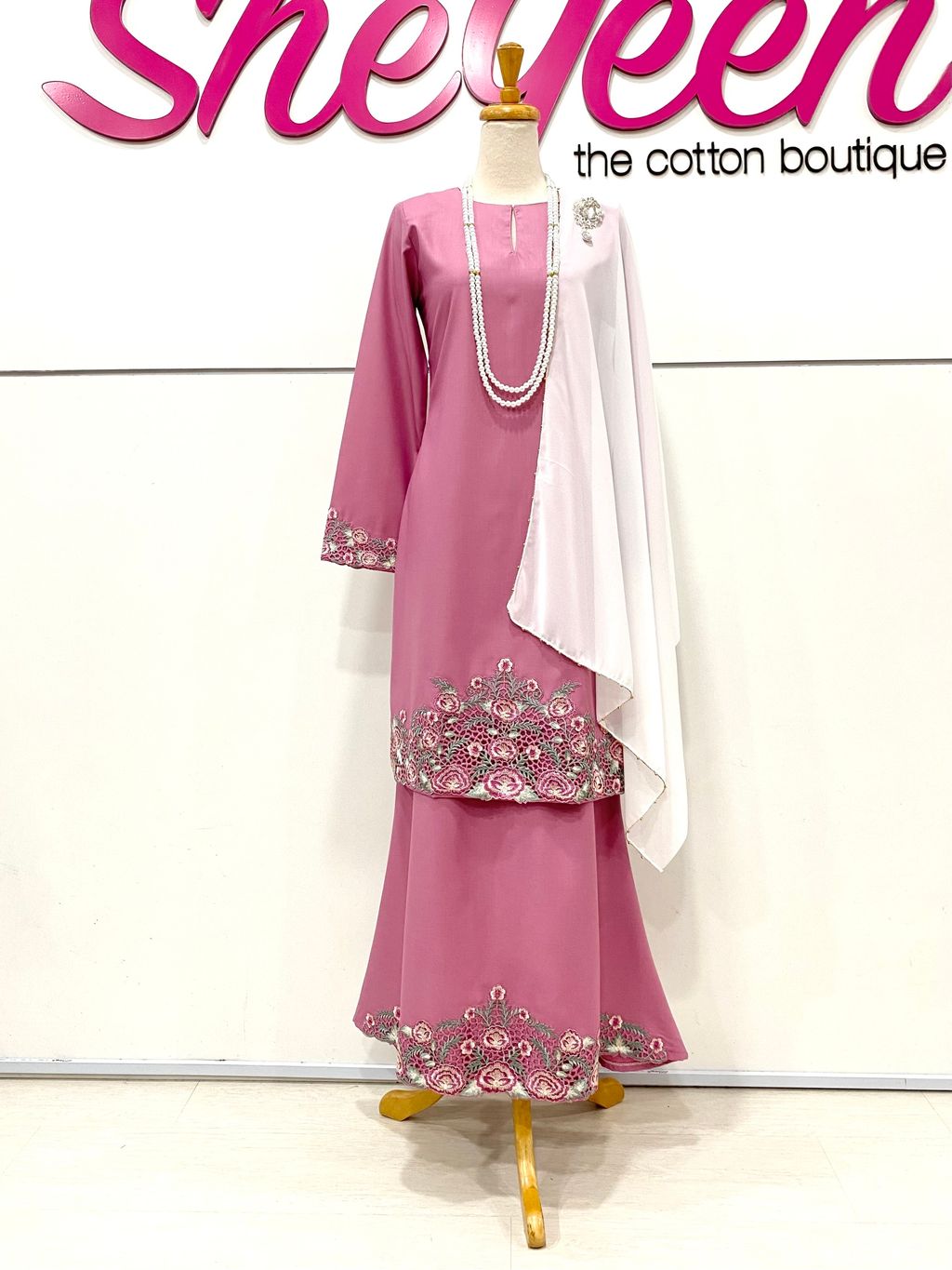 Kurung Moden Sulam Qalsom in Rose Pink
